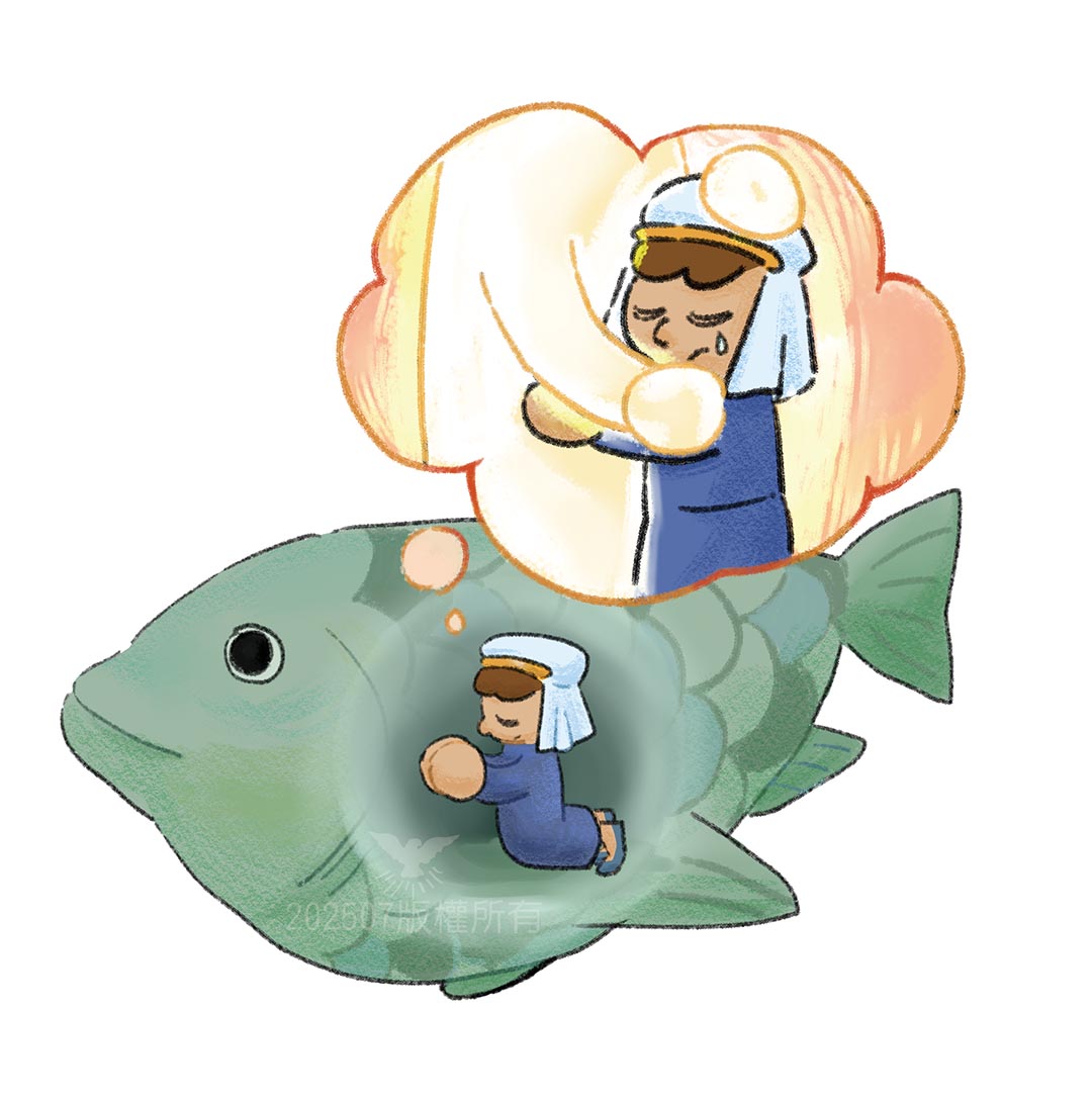 拿一1-3),我們看見約拿心中發昏,於是有躲避神、寧願睡覺、被投入海,也不願向神禱告的狀況(