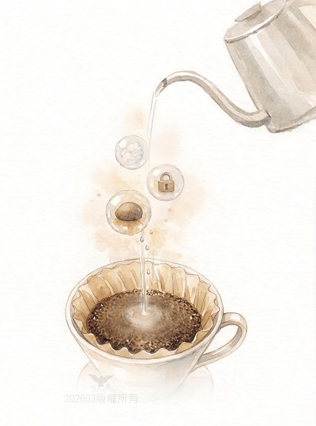 在手沖咖啡裡,第一個步驟是「悶蒸」。悶蒸讓咖啡粉均勻吸水,並將其中的二氧化碳排出,讓後續的萃取更加順暢。我常覺得每個人就像咖啡豆,擁有自己獨特的個性與香氣,而神的話語就像流動的水。當水注入咖啡粉,二氧化碳被擠壓而出的過程,就像生命裡那些不那麼重要、該被釋放的雜質。即使原本抓得再緊,因為有神,我們終究能慢慢鬆手。