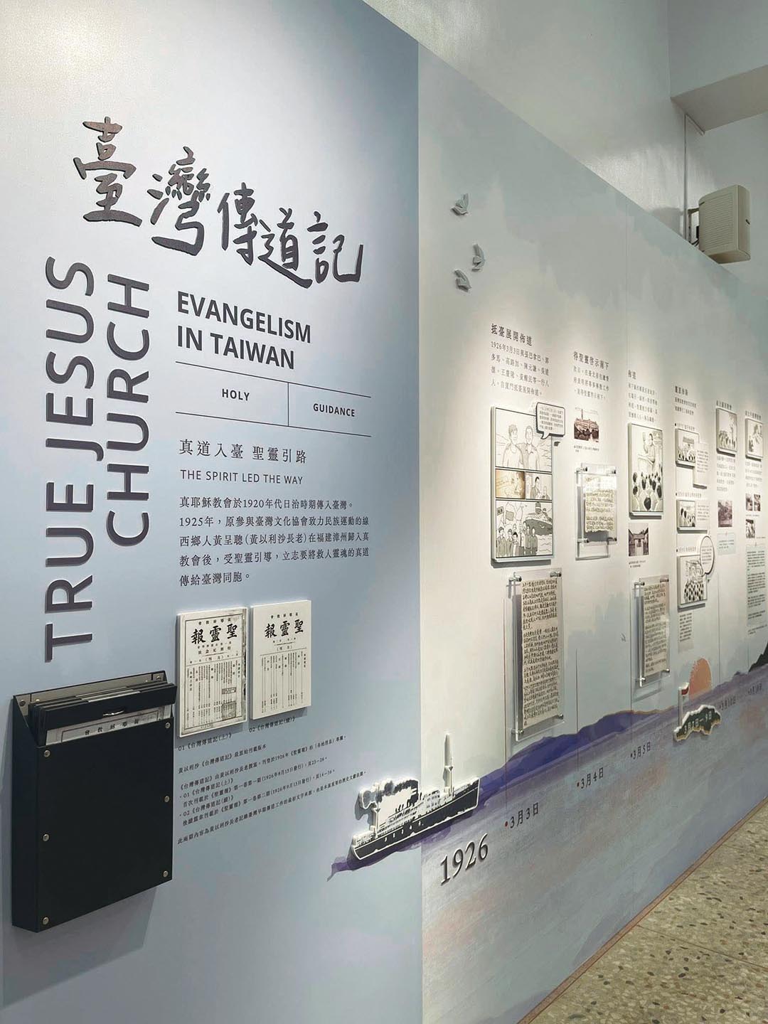另外,展覽亦呈現了主的工人們領受從神而來的智慧:為順利推展真道,教會從初期便致力於健全組織、培訓工人,建立兒童與青年的宗教教育體系,同時重視文字與多媒體的文宣事工。現場特別展出相關文物與珍貴相片,並播放謝順道長老對文字傳道的勉勵,以及高彼得長老山地傳道的見證影音。