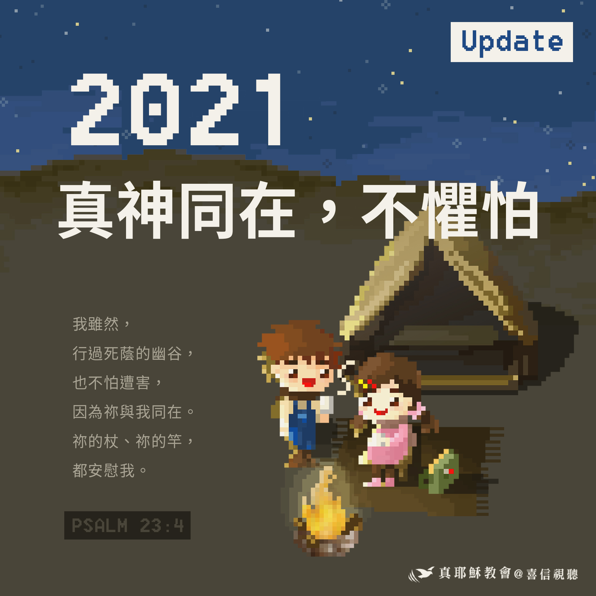 「我雖然行過死蔭的幽谷,也不怕遭害,因為祢與我同在,祢的杖、祢的竿,都安慰我。(詩篇 23:4)」