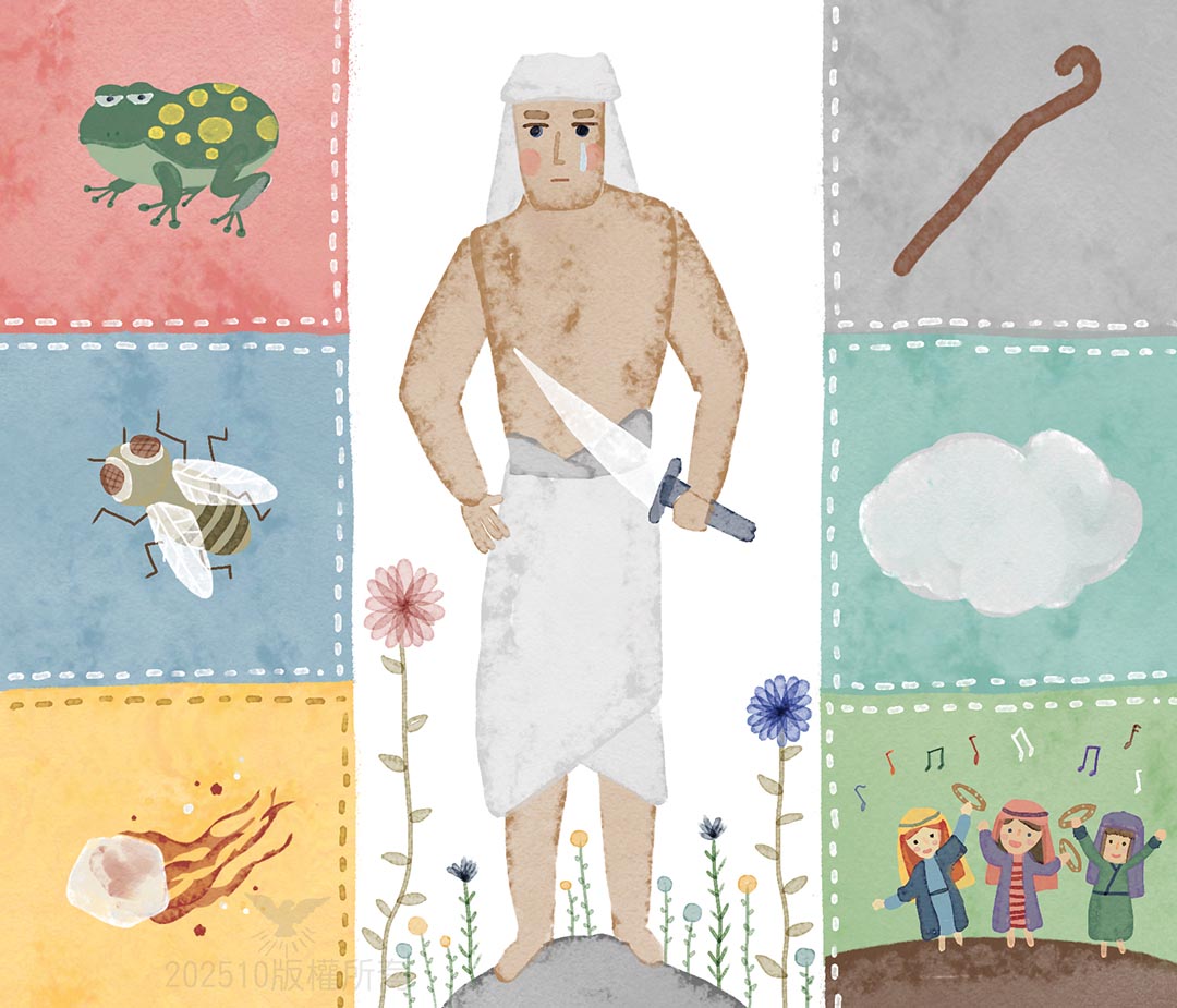 最近軍長對他們越發苛刻,因為他們的首領摩西去見法老,要求帶領族人離開埃及,卻被拒絕。結果埃及全國上下,連軍營也無法倖免,接連慘遭害蟲之災──青蛙、蝨子、蒼蠅……甚至出現各種皮膚病。害得我們晚上根本睡不著,休息時間都用來捉捕蟲子,大家不堪其擾。